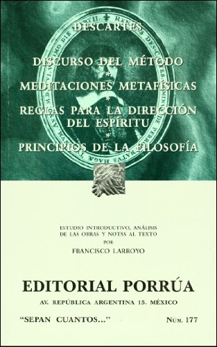 Discurso del método ; Meditaciones metafísicas ; Reglas para la dirección del espíritu ; Principios de la filosofía / Descartes ; estudio introductorio, análisis de las obras y notas al texto por Francisco Larroyo.